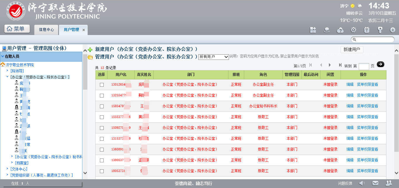 通達(dá)OA平臺(tái)鉆石版于2017年2月正式部署使用到現(xiàn)在,在學(xué)校的大力推廣下全校教職工全部開(kāi)始使用,功能模塊涉及到工作流、新聞、公告、文件柜、工作日志、日程安排等。