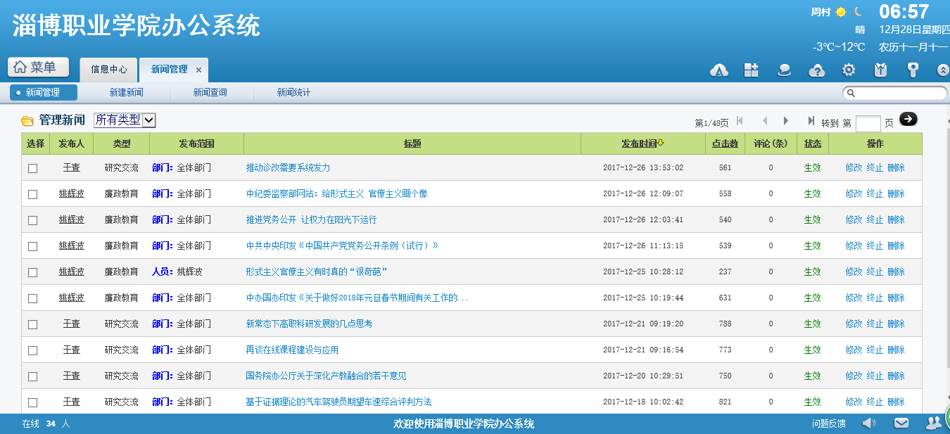 新聞管理功能主要用于學(xué)校文化建設(shè)中,向全校教職工展現(xiàn)學(xué)校的相關(guān)新聞動態(tài),讓所有人參與到學(xué)校的教學(xué)管理中來。