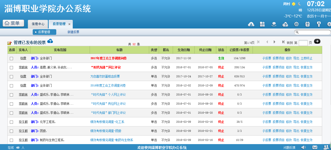 投票管理是學(xué)院深刻貫徹落實校園民主的一項舉措,大事由大家群策群力,共同表決,讓所有的人勇于發(fā)聲,聽到不同的聲音,極大的促進了民主集中制的發(fā)展和進步。