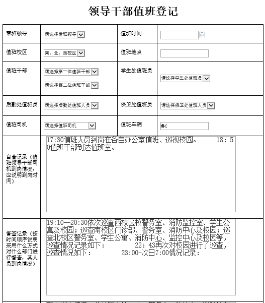 例1:領(lǐng)導(dǎo)干部值班登記流程