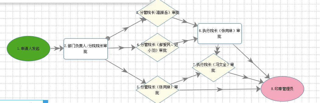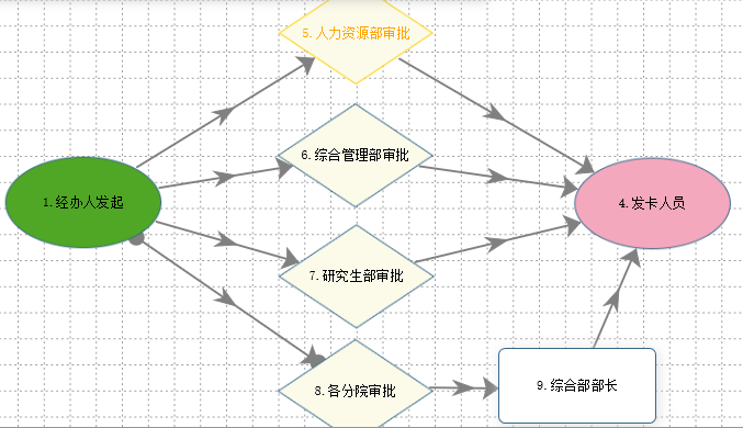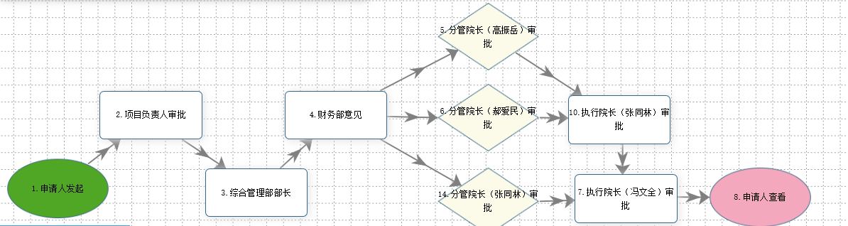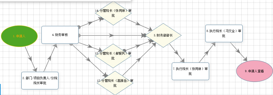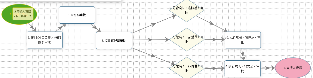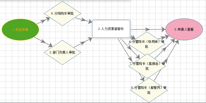 流程可以按照不同的條件進(jìn)行設(shè)置,所有的人員只需走一個流程,按照請假天數(shù)和請假人員的崗位級別分別走不同的步驟。
