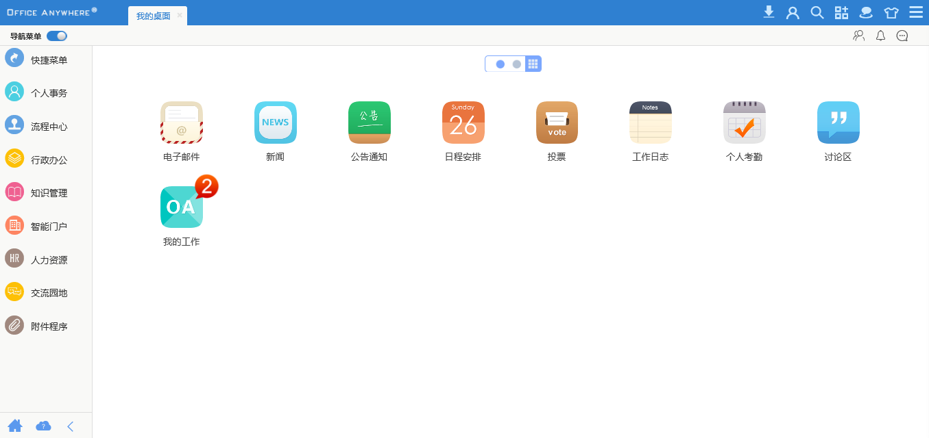 支持一鍵拖拽,將自己經(jīng)常用到的信息可以拖動到頂部顯示,以便方便快捷的找到自己想要的信息。比如電子郵件、公告通知、新聞、工作流等模塊。