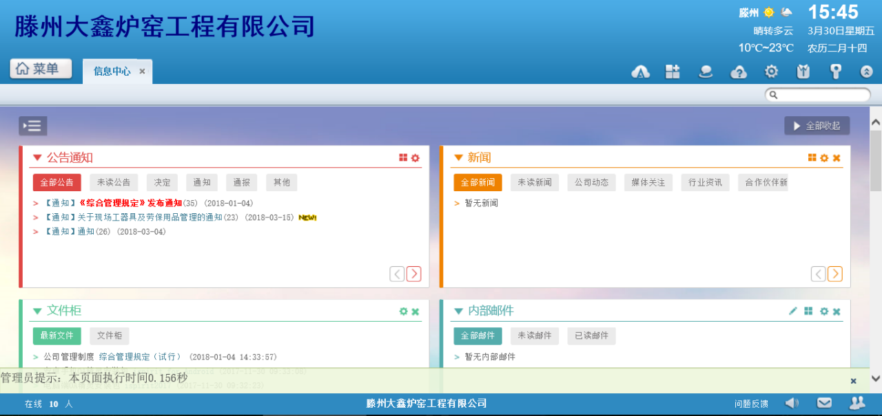 我們企業(yè)骨干人員都是從滕州同得利爐窯工程有限公司出來,所以說對通達(dá)OA已經(jīng)非常熟悉,幾乎我們沒有考慮其他家的OA直接定了通達(dá)。首先通達(dá)OA不論網(wǎng)頁端、手機(jī)端或者電腦端OA精靈,操作簡單,易上手,新員工入職只需按照要求下載,自己試著就可以應(yīng)用,操作非常簡單。