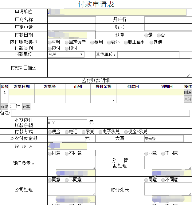 注:付款申請(qǐng)單在審批過(guò)程中,如果中間出現(xiàn)駁回要求變更付款額的,需要發(fā)起人更改付款額度以后從新開(kāi)始流程審批。已經(jīng)使用ERP的單位在系統(tǒng)融合之前可附帶ERP系統(tǒng)中形成的請(qǐng)款單照片,待系統(tǒng)融合后直接從系統(tǒng)中推送;未上ERP系統(tǒng)的單位可從財(cái)務(wù)部門(mén)提取數(shù)據(jù),經(jīng)財(cái)務(wù)人員審核后提示付款。