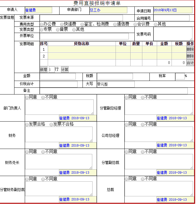 以下表單是公司統(tǒng)一使用的做進(jìn)協(xié)同辦公系統(tǒng)的表單,對(duì)應(yīng)各自不同的流程.