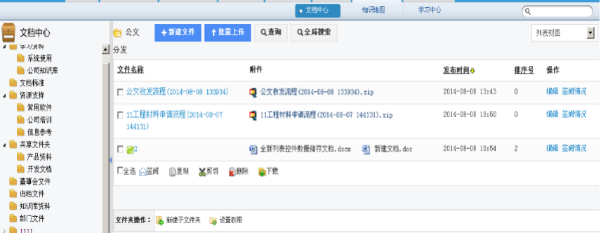 將企業(yè)的規(guī)章制度、常用到的表格等資料可以放到公共文件柜中,以便員工查閱及下載。