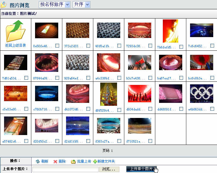 圖片瀏覽也是系統(tǒng)中實(shí)現(xiàn)文件共享的重要模塊之一,但該模塊主要實(shí)現(xiàn)對(duì)圖片文件的管理和預(yù)覽,并可設(shè)定相關(guān)的“開(kāi)放范圍”、“上傳權(quán)限”和“管理權(quán)限”。在打開(kāi)圖片瀏覽時(shí),會(huì)將該文件夾下面的所有圖片以縮略圖的方式顯示,用戶可以按名稱等類型進(jìn)行排序調(diào)整,并可以上傳和刪除管理圖片。
