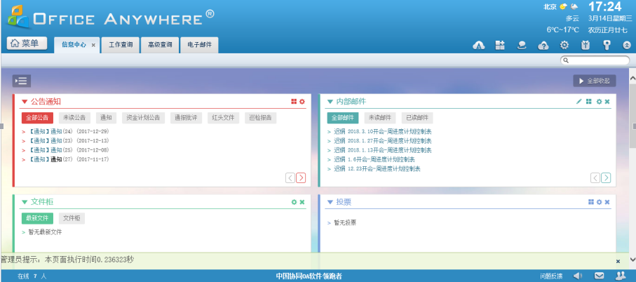 公司企業(yè)的發(fā)展急需信息化、產(chǎn)業(yè)化,隨著公司規(guī)模的不斷擴(kuò)展,公司領(lǐng)導(dǎo)層主導(dǎo)行政辦公信息自動(dòng)化,責(zé)令信息部牽頭,各部門協(xié)助,在國(guó)內(nèi)知名OA廠商中挑選適合企業(yè)發(fā)展需要的OA產(chǎn)品,經(jīng)過多番比較,通達(dá)OA逐漸嶄露頭角,最終領(lǐng)導(dǎo)拍板定了通達(dá)OA,通達(dá)作為OA的老品牌,唯一的央企單位,在實(shí)現(xiàn)OA的通知公告、新聞、工作流審批、文件存儲(chǔ)、行政辦公、辦公用品、車輛管理、人力資源管理等功能上,操作簡(jiǎn)單,功能齊全,大大提高了工作效率、安全性和管理的統(tǒng)一性。辦公自動(dòng)化是一種習(xí)慣,通達(dá)OA簡(jiǎn)潔的操作界面,智能化的操作安裝,尤其是工作流應(yīng)用更是方便快捷,超高的性價(jià)比讓通達(dá)OA成了我們的首選。