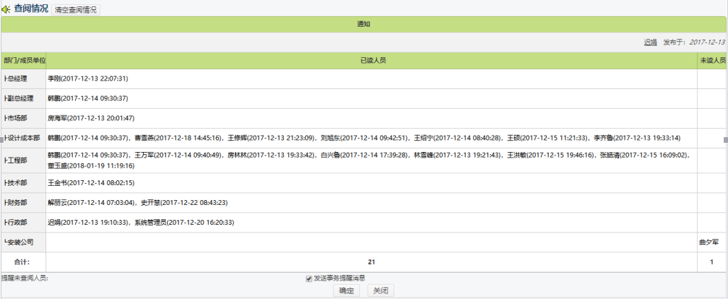 公告通知功能可根據(jù)企業(yè)需要,支持按部門、崗位、人員等多種范圍發(fā)布,相關(guān)人員也可通過后臺(tái)查看通知公告的查閱情況,發(fā)布內(nèi)容支持超級(jí)鏈接、附件上傳等。