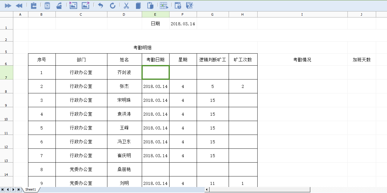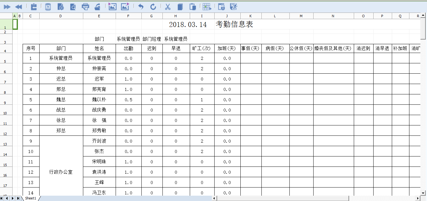 可以統(tǒng)計(jì)一個時間段內(nèi)的本部門員工考勤信息,通過提取考勤表中的數(shù)據(jù),可以很清晰的知道每個員工出勤了幾天,曠工了幾天,請假了幾天。