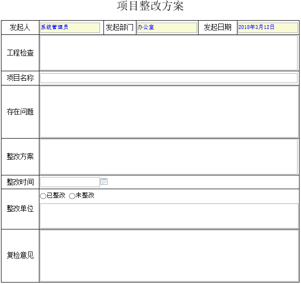該流程較為簡(jiǎn)單,通過(guò)工作流程的形式實(shí)現(xiàn)向總經(jīng)理匯報(bào)整改方案的功能,總經(jīng)理和匯報(bào)人之間可以反復(fù)轉(zhuǎn)交,直至整改結(jié)束。