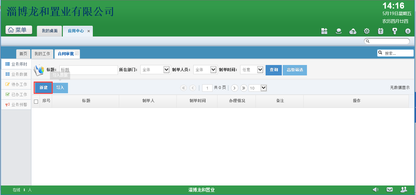 點(diǎn)擊新建,創(chuàng)建新的合同審批流程。
