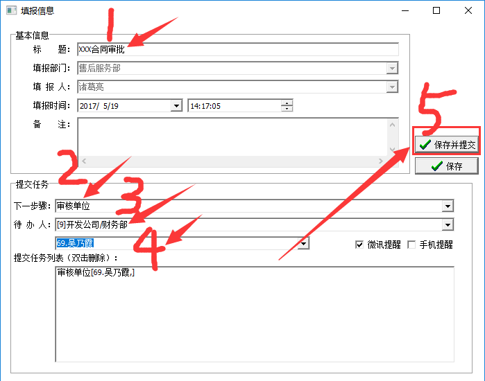 (3)按照如圖所示的1-2-3-4-5的順序依次打開(kāi)下拉菜單進(jìn)行選擇,不能選擇的默認(rèn)即可,最后點(diǎn)擊5保存并提交。