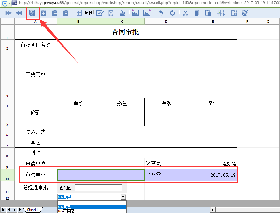 (5)領(lǐng)導(dǎo)填寫完成后點(diǎn)擊左上角保存進(jìn)行轉(zhuǎn)交同步驟一。