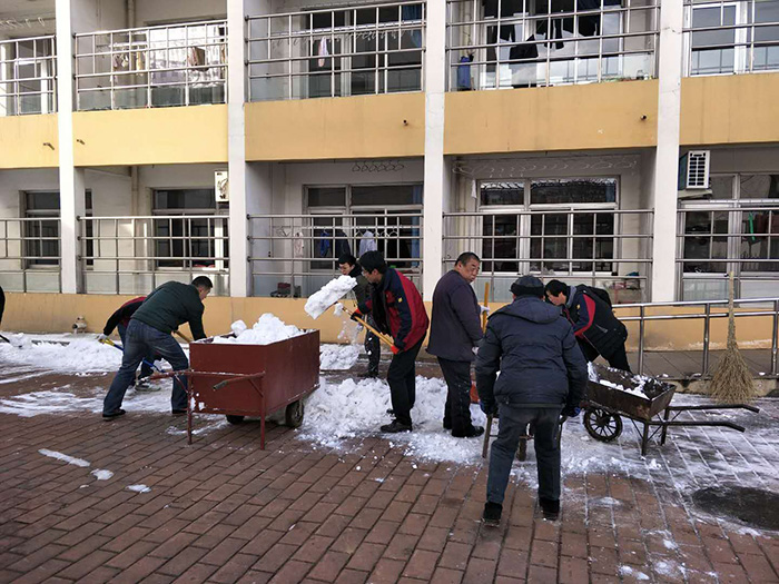 寒冬臘月,大雪飄揚。去年臘月,龍口地區連下幾場大雪。瑞雪兆豐年,但也給人們的生活及出行帶來諸多不便。因持續低溫,龍口海岱區敬老院院內的積雪一直沒有消融,對院中老人的安全造成極大的隱患。龍口市藍牙數控裝備有限公司得知這一情況后,第一時間聯系了敬老院,并組織了公司員工去敬老院掃雪,幫助解決老人們的安全隱患。