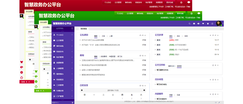 基于“互聯(lián)網(wǎng)+政務”創(chuàng)新,圍繞深化政府單位智慧機構(gòu)建設,立足于政務應用的實際需求,憑借多年來政務領(lǐng)域的成功經(jīng)驗,提出了全新的智慧政務解決方案。用戶可以通過電腦桌面、手機、平板設備等終端,實現(xiàn)公文運轉(zhuǎn)處理、公文交換、工作事務審批、會議管理、通知公告、文件管理、督查督辦、電子郵件、通訊錄、在線交流等一系列常用功能,豐富工作職能,拓展工作空間,有效提高工作辦事效率。